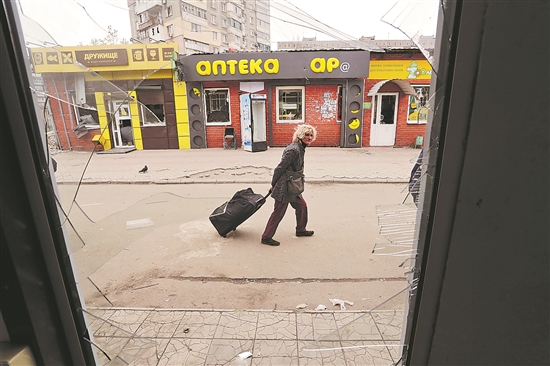 4月19日,在马里乌波尔,当地居民从被损坏的建筑旁走过。新华社发(维克托 摄)