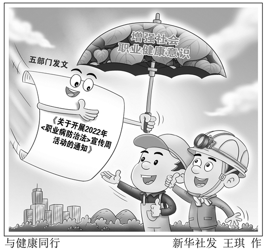 国家卫生健康委、民政部等五部门近日联合印发《关于开展2022年<职业病防治法>宣传周活动的通知》。通知要求有效落实“防、治、管、教、建”五字策略,进一步增强全社会职业健康意识,有效提高劳动者健康水平。新华社发 王琪 作