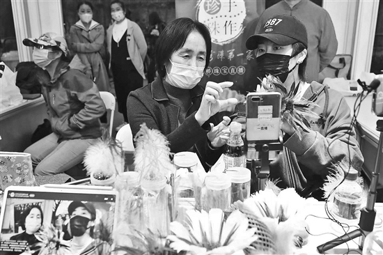 4月18日,北京市东城区“2022东城消费季”活动上,商家正在直播带货。