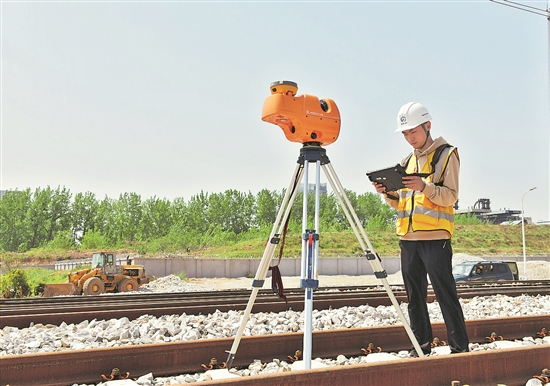 图为技术人员使用该装置进行接触网参数测量。卢园园 李忠慧 摄