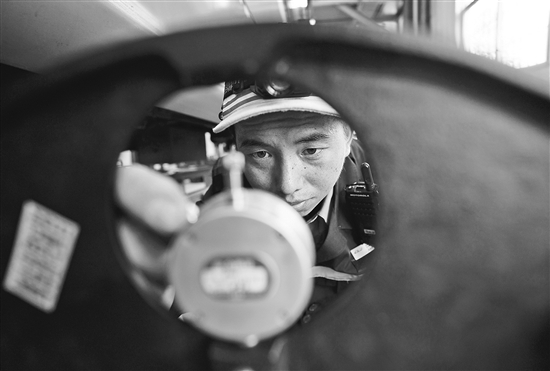 4月26日,吴志祥在调试轮径尺。