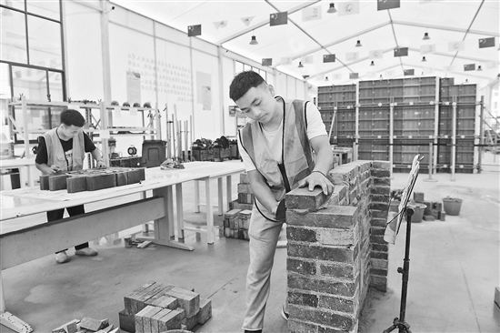 4月27日,贵州交通技师学院学生在练习砌墙,备战贵州省第一届职业技能大赛砌筑项目。近年来,贵州省提出打造特色职业教育强省,采取多种措施,培养高素质劳动者和技术技能人才,推动职业教育高质量发展。新华社发(邓刚摄)