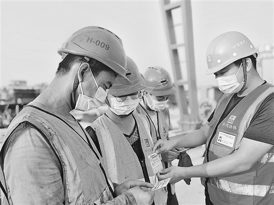 近日,中建路桥集团广西横州大桥项目部为农民工发放“职业危害告知胸卡”。“胸卡”就不同工种的作业特点和可能存在的职业危害进行风险提示,旨在提高农民工安全意识、保障作业安全。