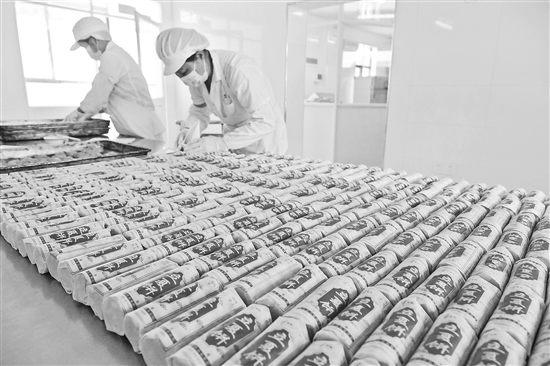 5月3日,工作人员在浙江省杭州市临平区塘栖镇一传统糕点厂内制作“立夏饼”。