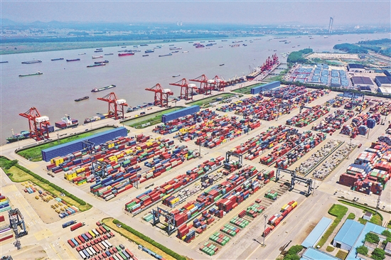 图为5月6日拍摄的江苏省港口集团南京港龙潭集装箱有限公司港口(无人机照片)。