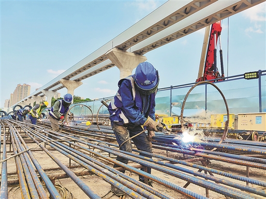 “五一”期间,深圳地铁16号线坪山站施工现场,中铁十九局轨道公司建设者坚守岗位,高质量、高标准、高效率完成附属结构入口围护桩施工和地连墙切割作业任务。