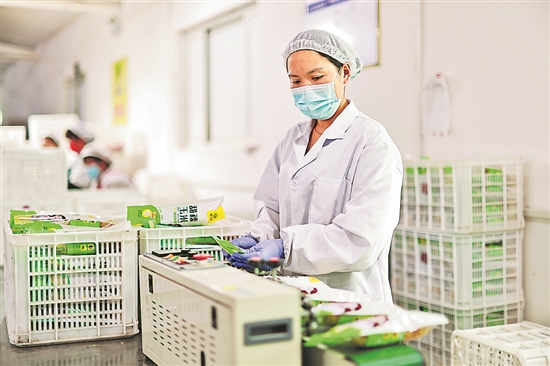 近日,在山东聊城冠县范寨镇福优优农业(山东)有限公司,车间工人在对糯玉米进行深加工和真空包装。近年来,范寨镇为实现巩固拓展脱贫攻坚成果与乡村振兴有效衔接,采取“党支部+企业+脱贫户”模式,鼓励当地企业勇于创新,着力打造特色品牌。(黄秀秀 孙鹏 摄)