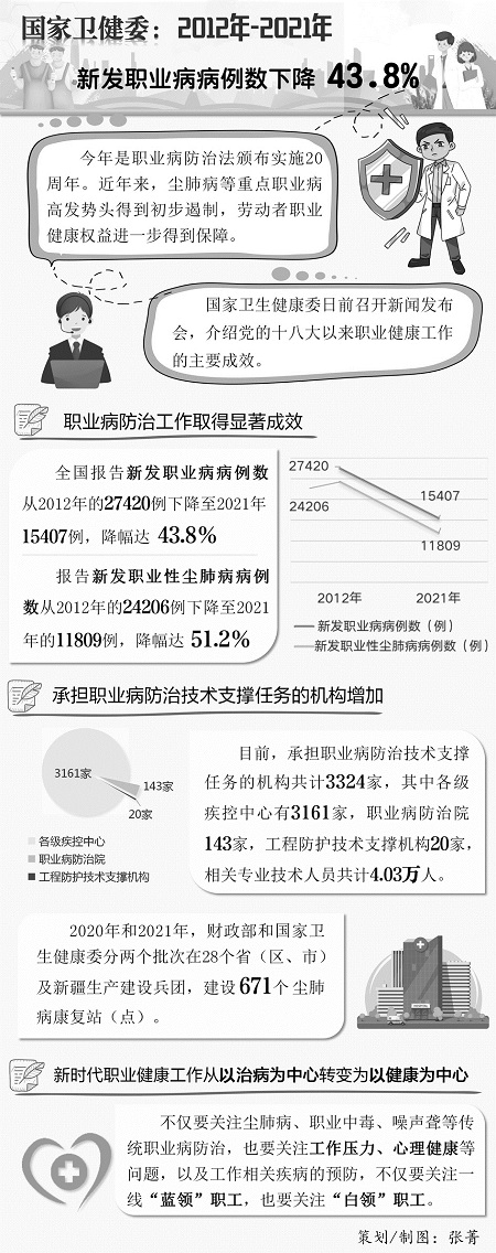 国家卫健委:2012年-2021年新发职业病病例数下降43.8%