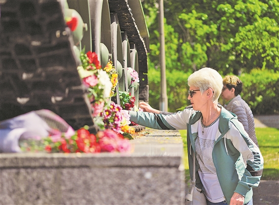 5月8日,在德国首都柏林的德俄博物馆,一名女子在一辆用于展览的坦克旁献花。当日是第二次世界大战“欧洲胜利日”,人们自发来到位于德国柏林东南部的德俄博物馆,纪念战胜德国法西斯77周年。
