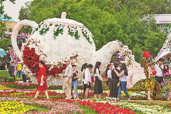 5月6日,人们在乌兹别克斯坦首都塔什干的花卉节上参观。当日,为期三天的塔什干花卉节在乌兹别克斯坦首都塔什干开幕,吸引游客前来观赏游玩。新华社记者 蔡国栋 摄