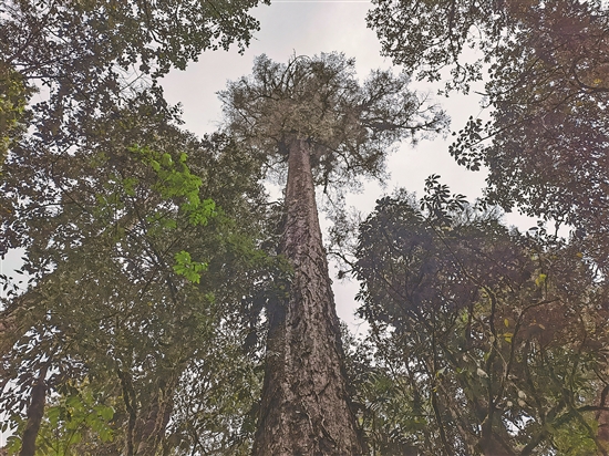 我国科研人员在西藏自治区墨脱县记录到一棵高达76.8米的巨树,成为中国大陆范围内迄今为止发现的最高的树。图为西藏墨脱县格林村一棵高达76.8米的不丹松。新华社发