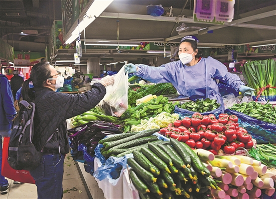 记者在上海市嘉定区、松江区的部分街道社区看到,防范区内的居民可按照“有限人员、有限区域、有限活动”的管控措施,走出家门购物、办事。人们在恢复线下营业的菜市场、大型超市、便利店等零售场所选购商品,往日的“烟火气”已渐渐回来。