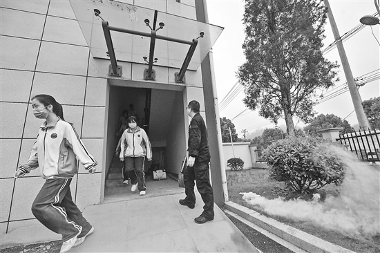 5月10日,昌化中学的学生在进行逃生应急演练。当日,浙江省杭州市临安区昌化镇开展“防灾减灾日”主题教育活动。昌化镇应急救援队队员、昌化中学学生等在消防队员的带领下参加了逃生演练、灭火演练、心肺复苏演练等活动。 新华社记者 徐昱 摄
