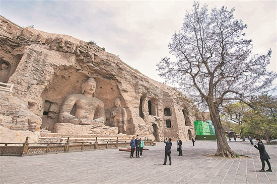 图为游客在云冈石窟景区内参观。新华社记者 杨晨光 摄