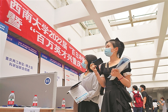 5月13日,“百万英才兴重庆”首场高校专场招聘会在西南大学举行,用人单位提供了3000多个岗位供毕业生选择。新华社发 (秦廷富 摄)