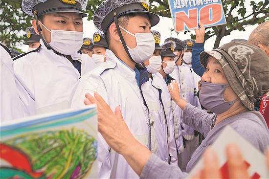 不久前,冲绳一名警察使用警棍打破学生眼球。上百名冲绳年轻人围堵当地一个警察局,投掷石块、瓶子等进行抗议。不少日本网民辱骂这些冲绳人为“土人”。