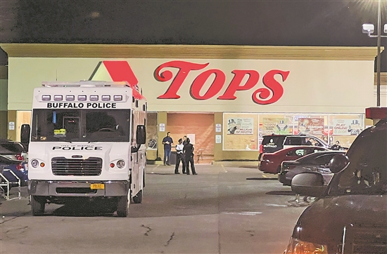 图为5月15日凌晨,警察在美国纽约州布法罗市的枪击案现场工作。新华社发(张杰 摄)