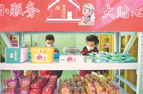 5月16日,快递小哥在安徽省合肥市蜀山区井岗镇大溪地商圈的“蜀蜂驿站”挑选食品饮料等物品。当日,大溪地商圈首个“蜀蜂驿站”建成对快递小哥开放,让快递小哥有了温暖的“家”。“蜀蜂驿站”面积50多平方米,配备饮水机、空调、医药箱、报刊书籍等物品,免费为快递从业者提供临时休息场所和免费的法律援助等服务。本报通讯员 胡朝群 摄
