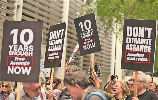 英国民众示威呼吁不要将阿桑奇引渡至美国