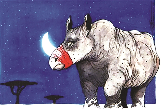 珍贵的犀牛角经常被歹徒盗猎,从而使存世不多的物种濒临灭绝。在一轮明月相伴下,似乎弥补了犀牛点滴缺失。