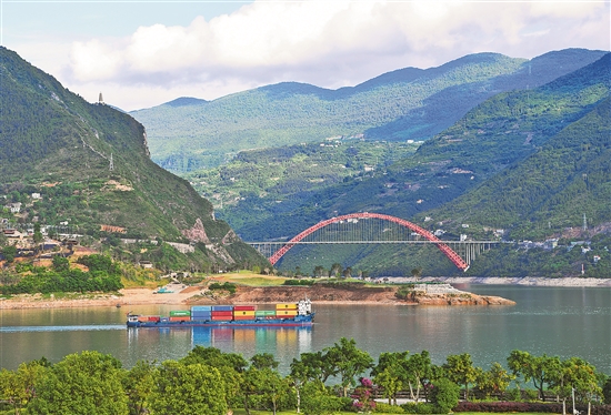 5月19日,货船行驶在长江巫山段巫峡口一带。