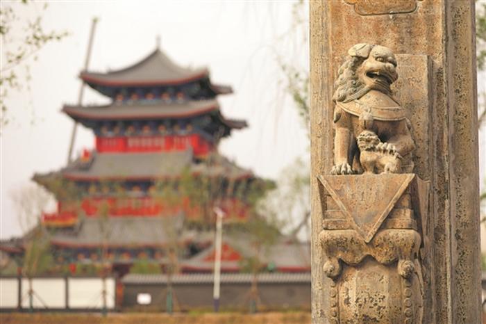 这是5月24日拍摄的沧州市大运河畔百狮园南川古渡景色。在河北省沧州市大运河市区段,大运河景观带成为城市文化新地标,吸引市民前来休闲游玩。新华社记者 骆学峰 摄