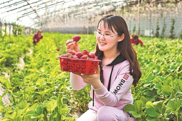 近日,游客在山东聊城经济开发区农惠生态种植专业合作社内体验采摘的乐趣。近年来,聊城经济开发区大力发展草莓、西红柿、黄瓜等种植产业,引导农户引进优质草莓等品种,打造集休闲观光、果蔬采摘等为一体的种植产业基地。黄秀秀 摄