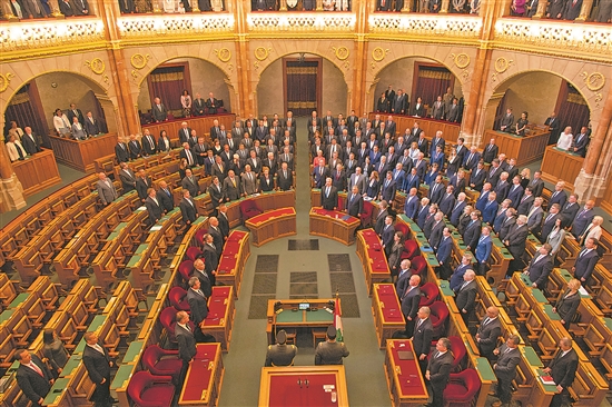 匈牙利新政府部长24日在国会大厦宣誓就职,标志着匈牙利新一届政府正式成立。匈牙利新一届政府由包括总理欧尔班在内的15名成员组成。新华社发 (弗尔季·奥蒂洛 摄)