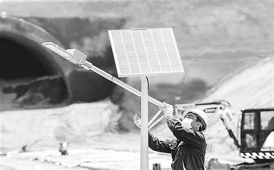 承担建设任务的中铁四局在项目施工中,把环境保护制度纳入员工业绩考核,通过对施工现场的扬尘、噪声、废物废水的及时控制和消纳,使用新能源设备施工等途径,实现绿色施工,环保筑路。新华社发(王正 摄)