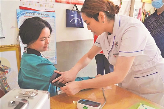 近日,临清市潘庄镇“签约医生”上门为脱贫户陈淑娜诊断治病。为做好医疗健康帮扶工作,山东省临清市通过“党建+签约医生”模式,依托600余名医护人员,构建了209个以全科医生为核心的家庭签约医生服务团队,对脱贫享受政策户应签尽签。王骁 摄