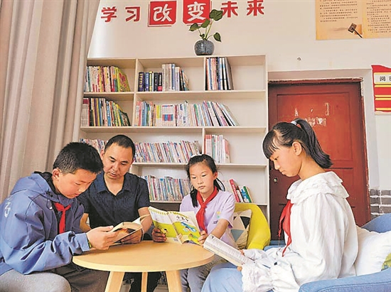 图为该县小水乡田上村党员志愿者在村级图书室陪伴农村留守儿童开展课外阅读活动。梁永伦 摄