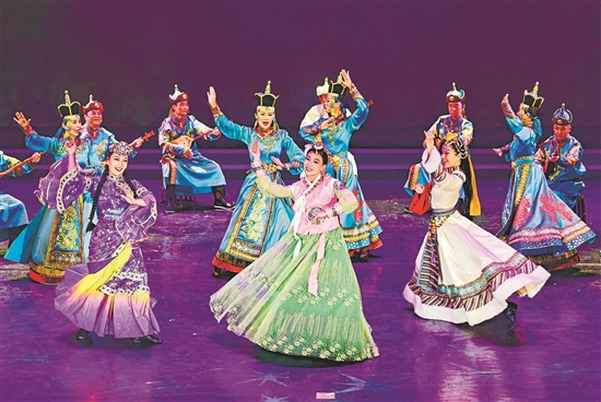 5月23日,演员表演赞词《亮丽内蒙古》。5月23日,由内蒙古艺术剧院创作排演的民族曲艺晚会《拉起四胡唱新歌》在呼和浩特上演。晚会运用赞词、祝词、乌力格尔、英雄史诗、叙事民歌、对口争辩辞令等蒙古族传统曲艺形式,歌颂党的恩情,展现了中华民族一家亲的美好幸福生活画卷。王正/人民图片