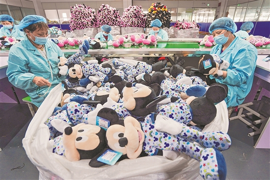 近年来,邗江区坚持“小玩具做成大产业、小玩具链接大市场、小玩具促进大发展、小玩具作出大贡献”的发展定位,建设毛绒玩具特色小镇,目前全区共有生产类毛绒玩具礼品注册企业300余家,知名卡通形象授权200余个。新华社记者 李博 摄