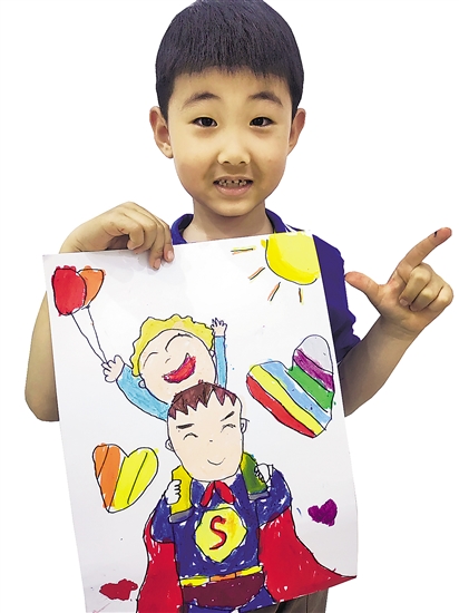 儿童节前夕,抚顺洗化厂开展“我眼中的爸爸妈妈”作品征集活动,让职工子女画爸爸妈妈,并说出最想对爸爸妈妈说的心里话。图为空分车间设备员赵洋的儿子赵宥淅画的“万能爸爸”。“我爸爸问他什么问题都能答上来,希望爸爸‘六一’那天能有空陪我玩!”赵宥淅说。王秋/文 王冰瑶/图