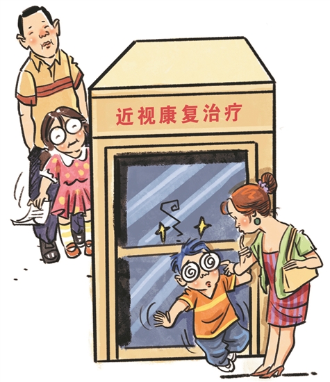 市面上防治近视的产品和方法,多是通过放松神经肌肉来缓解视疲劳带来的眼花等症状,能否治愈近视并不确定。近视防治,抓早抓小是关键,保持健康用眼习惯、适度进行户外运动才是良方。近年来,有关部门聚焦提高儿童青少年视力健康水平,连续打出政策“组合拳”,如通过“双减”减轻学生学业负担、减少用眼过度,通过提高体育成绩在升学考试中的比重以引导学生加强锻炼,引导学校科学规范使用电子产品,等等。保护孩子视力,家长不能“近视”,不能病急乱投医,而要对相关产品保持理性,对近视发生和预防的原理有所了解,要培养孩子科学用眼护眼的习惯,要谨防被商家忽悠进而被收智商税。赵春青/图 弓长/文