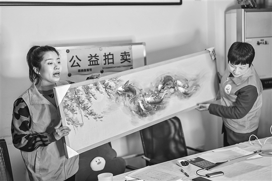 “福建金丝带”义卖直播间里,“小白”家长化身主播“带货”,1个小时卖出超过50件拍品。本报记者 李润钊 摄