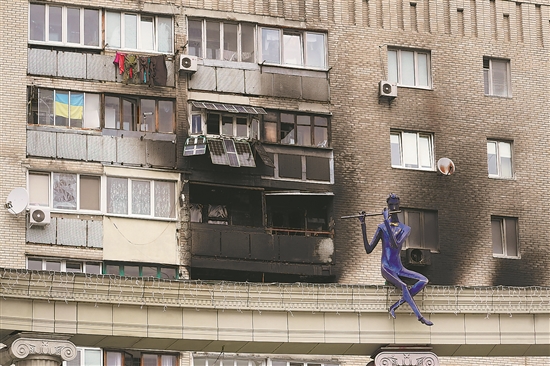 ②这是5月31日在乌克兰基辅州伊尔平市中心拍摄的一座受损的居民楼。