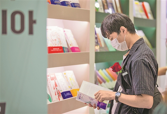 6月1日,一名男子在韩国首尔国际书展上参观。