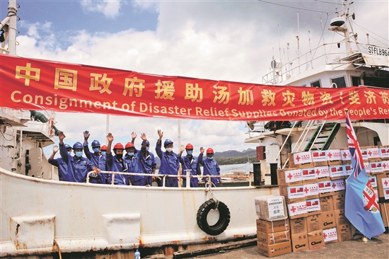 2022年1月24日,中国政府援助汤加救灾物资从斐济首都苏瓦的渔船码头启运。汤加火山爆发造成严重灾害后,中方立即响应汤方请求,通过多种渠道提供救灾援助。