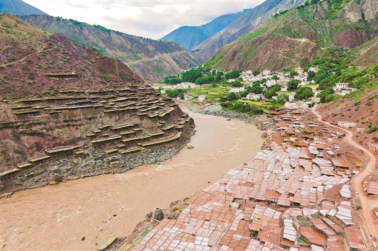 当地村民仍保持着原始的手工晒盐方式,他们从澜沧江畔的盐井、盐池中取出卤水倒入盐田,经阳光蒸晒、风干,结晶成盐。这项古老的技艺在加达村已经延续了1300余年。