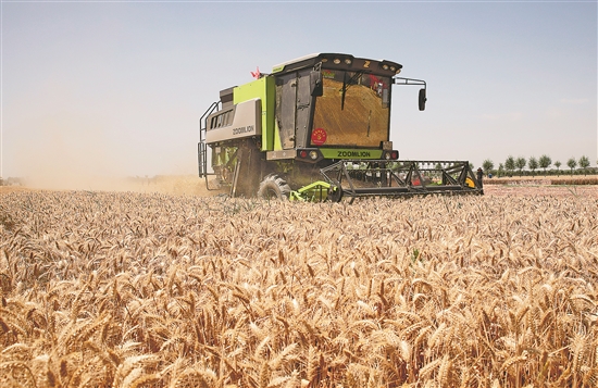 6月6日,河南省开封市尉氏县张市镇沈家村村民在抢收小麦。