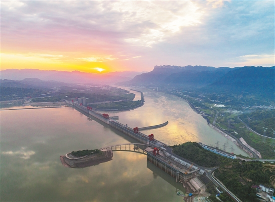 图为6月8日,在湖北省宜昌市秭归县拍摄的三峡水利枢纽工程。