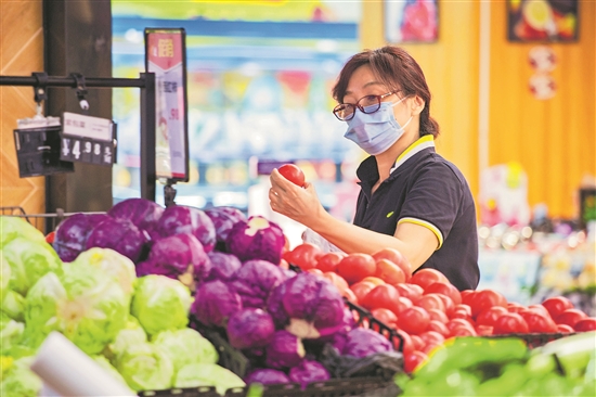 图为6月10日消费者在南京市一家超市选购蔬菜。新华社发(苏阳 摄)