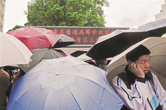 6月7日,福建省福州市下起了雨,第一场考试结束后,考生陆续走出福州第三中学考点。