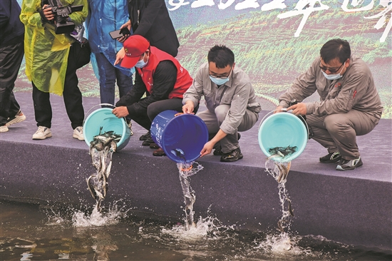 6月9日,在云南省昆明市阳宗海明湖湿地,115万尾鱼苗开启了“深海之旅”。增殖放流活动可以保护和修复阳宗海渔业种群结构,有效净化和改善水质,实现“以鱼养水”。本报记者 赵黎浩 摄
