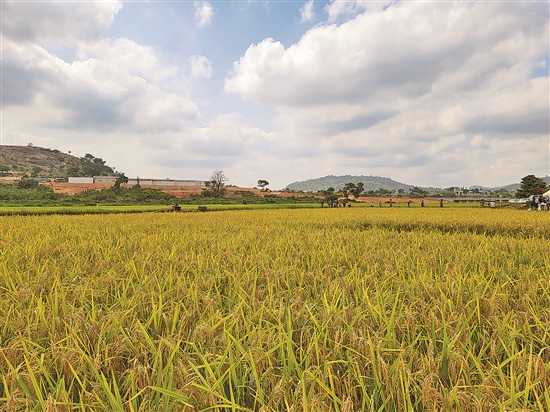 在尼日利亚阿布贾,中国企业中地海外集团一个水稻示范点的水稻已经成熟。新华社记者 郭骏 摄