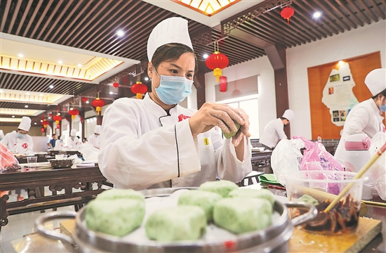 当日,新安镇举行职工职业技能大赛中式面点师比赛,参赛选手现场制作中式面点,比拼厨艺。此次大赛以理论知识与操作技能竞赛形式开展,旨在进一步提高区域餐饮烹调从业人员的综合素质和技艺水平,推动乡村旅游的发展。本报通讯员 王树成 摄