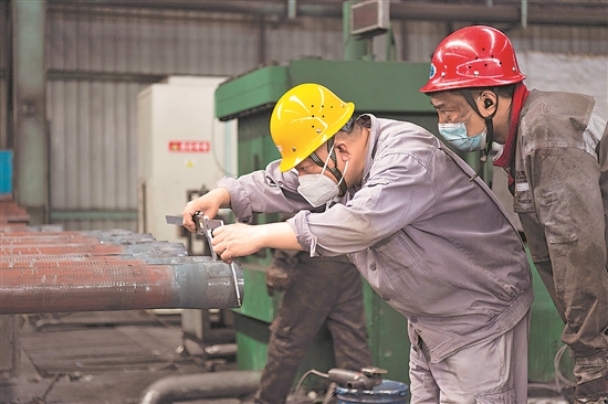 今年以来,位于黑龙江省双鸭山市的黑龙江建龙钢铁有限公司统筹疫情防控与企业生产,前5个月多项生产指标创历史新高,为资源型城市转型发展助力。图为6月16日工人在建龙钢铁公司生产车间作业。