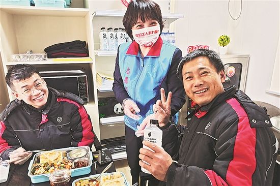 2021年冬天,对于在北京市西城区真武庙路附近奔波的快递小哥来说,注定是个“暖冬”:因为他们有了自己暖心又暖胃的“家”——位于真武庙路1号的中国职工之家A座门前建起了“职家小哥驿站”。