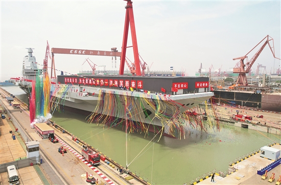 6月17日上午,我国第三艘航空母舰下水命名仪式在中国船舶集团有限公司江南造船厂举行。